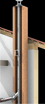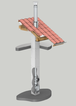 Sie bestehen aus zwei Edelstahlrohren mit dazwischenliegender Wärmedämmung. Sie werden meist außen an Gebäuden oder innen als freistehendes System verbaut – ganz ohne vorhandenen Schornstein.