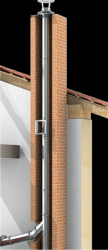 Diese Edelstahlrohre werden in bestehende Schornsteine eingesetzt, wenn der alte Zug beschädigt ist oder moderne Feuerstellen angeschlossen werden sollen.
